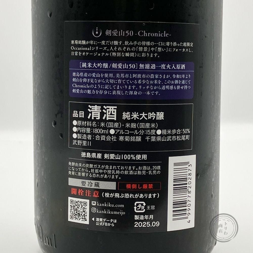 寒菊 剣愛山50-Chronicle- 純米大吟醸 無濾過一度火入れ原酒 [千葉] / 1800 mlのみ