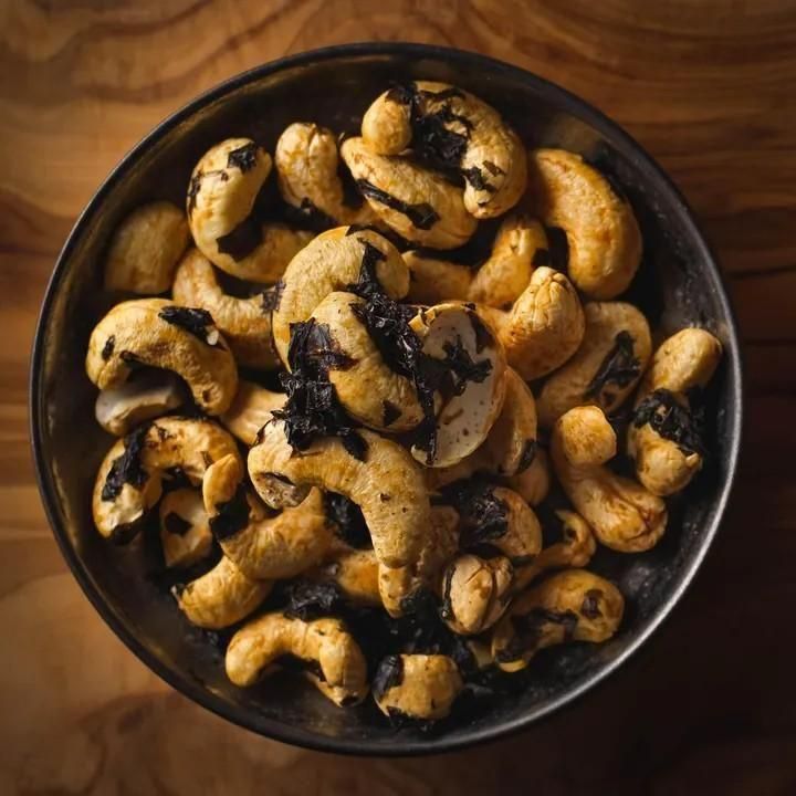 日本人のソウルフードである醤油と海苔をベースに、クリスピーなカシューナッツと牡蠣醤油の味わいが加わった絶妙な一品。