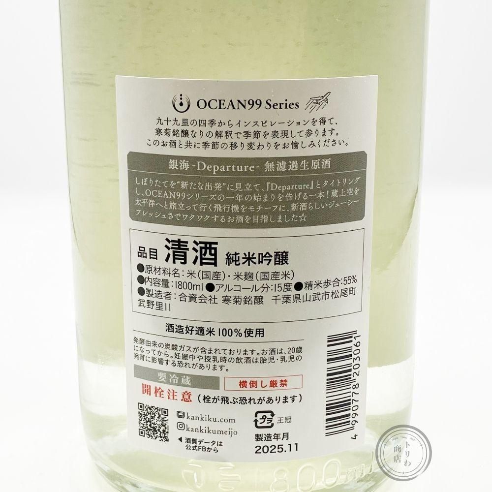 寒菊 Ocean99 銀海(ぎんかい) -Departure- 純米吟醸 無濾過生原酒 [千葉] / 720 ml, 1800 ml