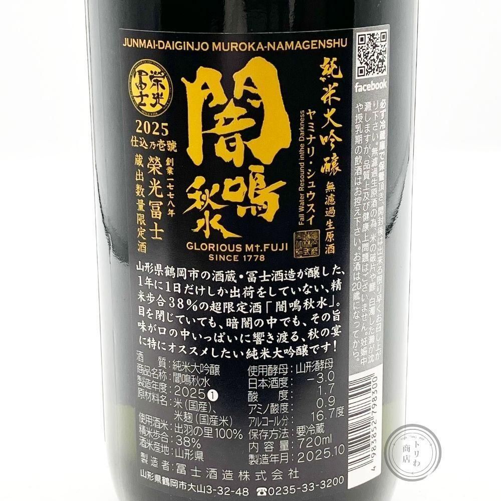栄光冨士 闇鳴秋水(やみなりしゅうすい) 純米大吟醸 無濾過生原酒 [山形] / 720 mlのみ