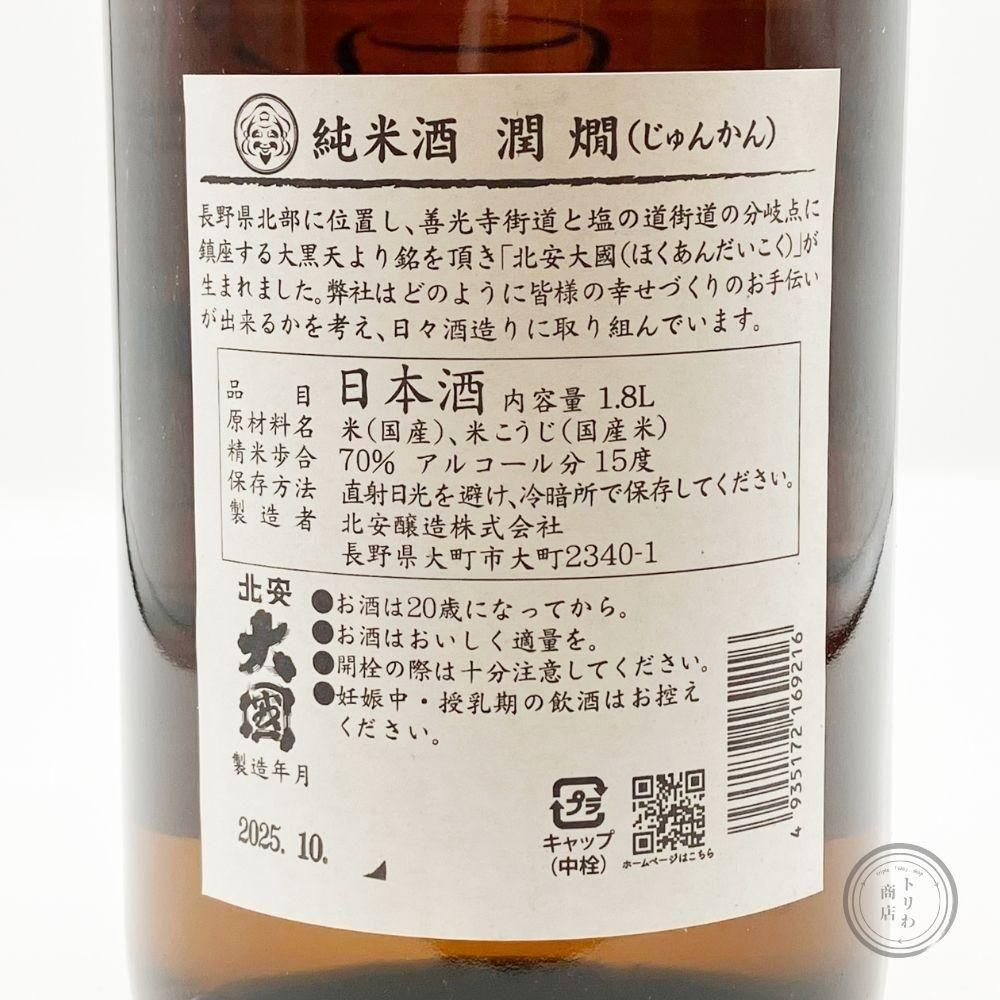 北安大國 潤燗(じゅんかん) 純米酒 [長野] /720 ml, 1800 ml